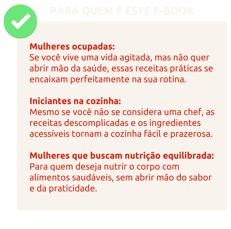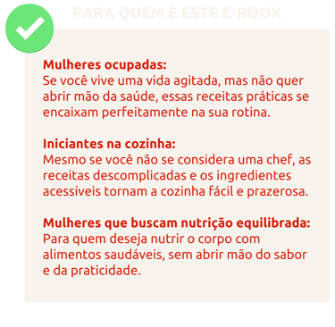 Cuidadosamente elaborado para mulheres como você, que desejam equilibrar saúde, praticidade e comida gostosa!